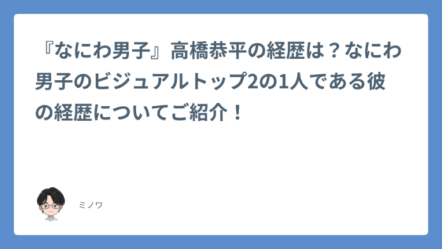 『なにわ男子』高橋恭平の経歴は?なにわ男子のビジュアルトップ2の1人である彼の経歴についてご紹介!