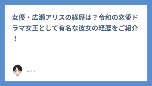 女優・広瀬アリスの経歴は?令和の恋愛ドラマ女王として有名な彼女の経歴をご紹介!