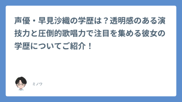 声優・早見沙織の学歴は?透明感のある演技力と圧倒的歌唱力で注目を集める彼女の学歴についてご紹介!