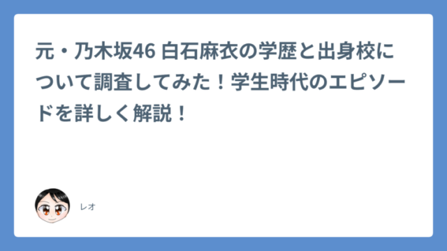 元・乃木坂46 白石麻衣の学歴と出身校について調査してみた!学生時代のエピソードを詳しく解説!