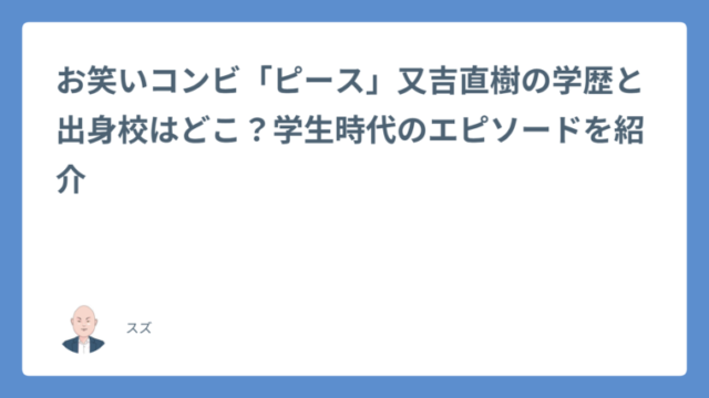 お笑いコンビ「ピース」又吉直樹の学歴と出身校はどこ?学生時代のエピソードを紹介
