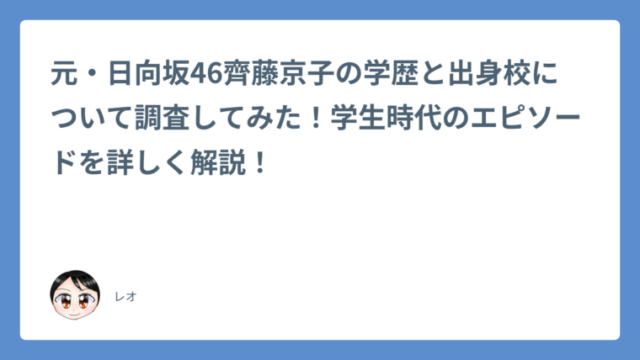 元・日向坂46齊藤京子の学歴と出身校について調査してみた!学生時代のエピソードを詳しく解説!