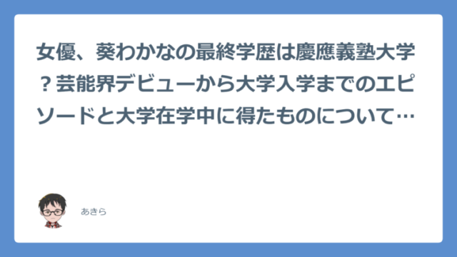 女優、葵わかなの最終学歴は慶應義塾大学?芸能界デビューから大学入学までのエピソードと大学在学中に得たものについても紹介