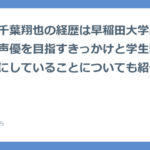 千葉翔也は早稲田大学在学中も声優を続けています。学業と仕事の両立は、教育を重視する家庭環境の影響が大きいです。名門大学と声優の両方を続けるには、芯の強さと自立が必要。