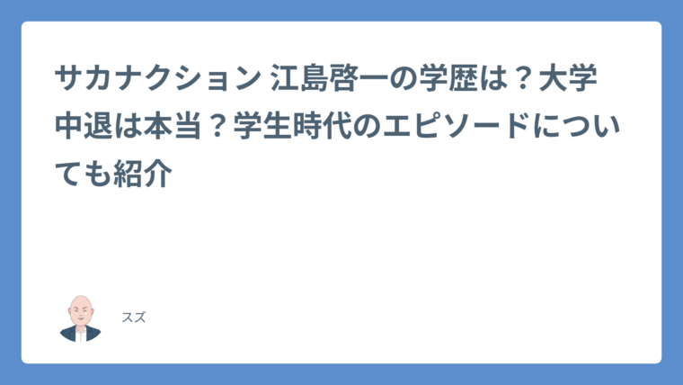 江島啓一さんの学歴、学生時代のエピソードについてご紹介いたします。サクッと読める内容になっていますので、ぜひ最後まで読んで頂けたら幸いです。