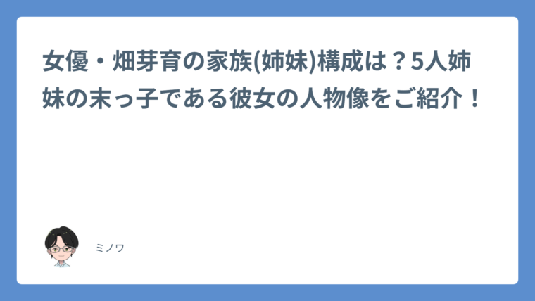 いかがでしたでしょうか?今回は畑芽育さんの家族構成や姉妹との関係性ついて、深掘りして解説しました。具体的には
