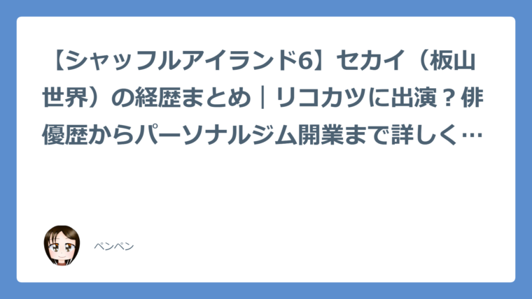【シャッフルアイランド6】セカイ(板山世界)の経歴まとめ|リコカツに出演?俳優歴からパーソナルジム開業まで詳しく解説!