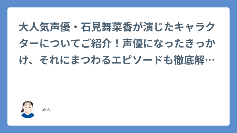 今回は石見舞菜香さんの演じたキャラクター、そして声優になったきっかけについて詳しく解説しました。具体的には、