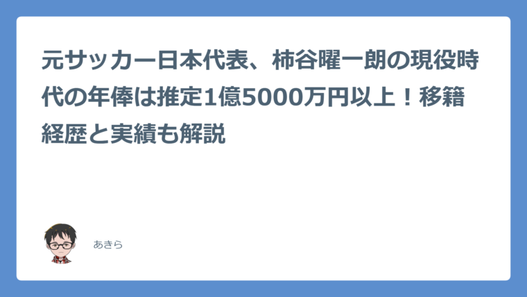 - 柿谷曜一朗はセレッソ大阪や海外クラブで活躍し、日本代表経験も含め現役時代の年俸は推定1億5000万円超とみられる。