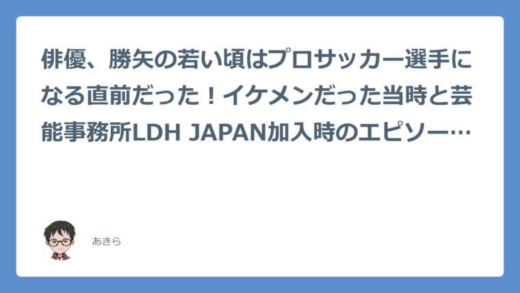 俳優、勝矢の若い頃はプロサッカー選手になる直前だった!イケメンだった当時と芸能事務所LDH JAPAN加入時のエピソードについても紹介