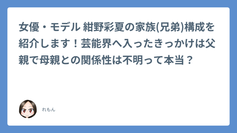 この記事では、そんな紺野彩夏さんの家族構成や家族とのエピソードについて詳しく解説します。調べた結果、家族構成は以下の通りです。
