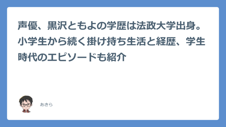 声優、黒沢ともよの学歴は法政大学出身。小学生から続く掛け持ち生活と経歴、学生時代のエピソードも紹介