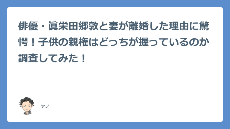 今回は眞栄田郷敦さんと元妻の離婚の理由から子供の親権はどちらが握ったかを詳しく解説していきました。離婚の理由は眞栄田郷敦さんの多忙によるものでしたね。子供は元妻が親権を握ることになりました。具体的には、