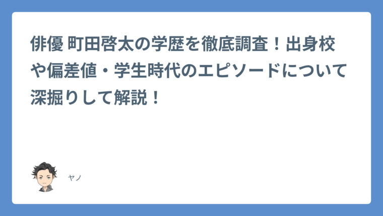 俳優 町田啓太の学歴を徹底調査!出身校や偏差値・学生時代のエピソードについて深掘りして解説!