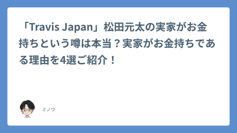 いかがでしたでしょうか?今回は松田元太さんの実家はお金持ちなのか?について、深掘りして解説しました。具体的には