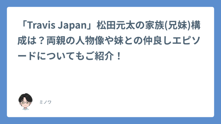 いかがでしたでしょうか?今回は松田元太さんの家族構成や妹との関係性ついて、深掘りして解説しました。具体的には