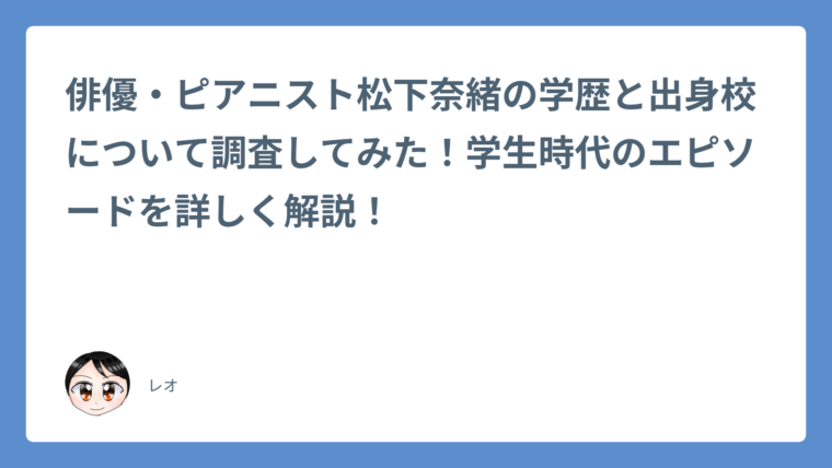 と松下奈緒さんの学歴や学生時代のエピソードについて詳しくご紹介いたします。サクッと読める内容になっていますので、ぜひ最後まで読んで頂けたら幸いです。