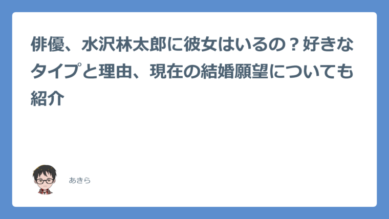 俳優、水沢林太郎(みずさわ りんたろう)さんは見た目の良さから彼女がいそうですが、結論は「いません」。理由は恋愛や結婚に関する話題がないからです。一方で好みのタイプについて、