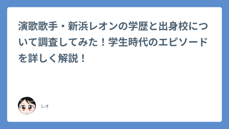 と新浜レオンさんの学歴や学生時代のエピソードについて詳しくご紹介いたします。サクッと読める内容になっていますので、ぜひ、最後まで読んで頂けたら幸いです。