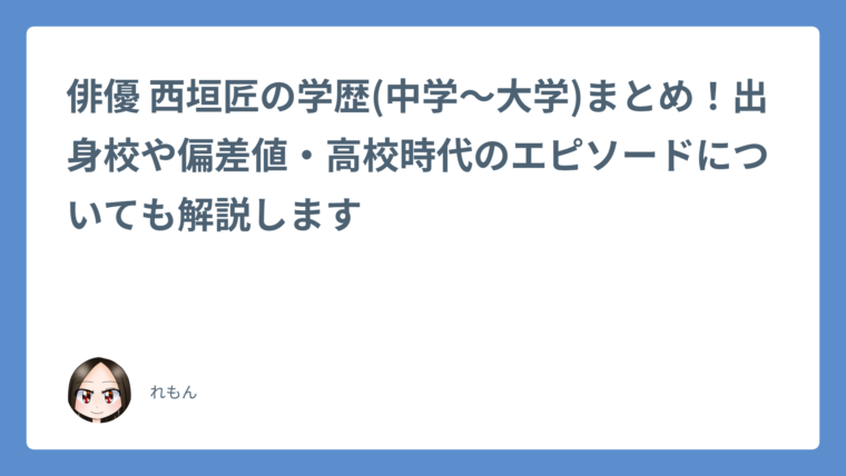 西垣匠さんの学生時代について、わかりやすくまとめました。ぜひ最後までご覧ください。
