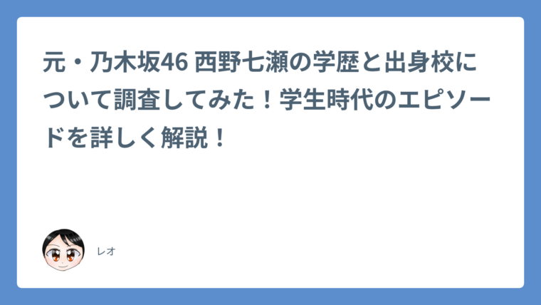 と西野七瀬さんの学歴や学生時代のエピソードについて詳しくご紹介いたします。サクッと読める内容になっていますので、ぜひ最後まで読んで頂けたら幸いです。