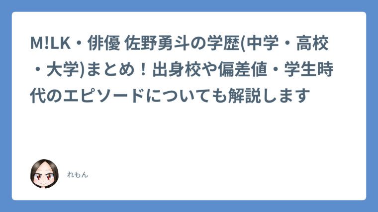 M!LK・俳優 佐野勇斗の学歴(中学・高校・大学)まとめ!出身校や偏差値・学生時代のエピソードについても解説します
