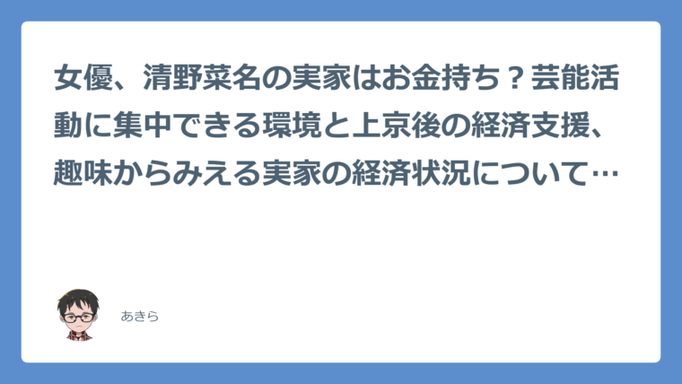 • 女優、清野菜名は幼少期から芸能活動に専念でき、実家の安定した経済支援が背景にある