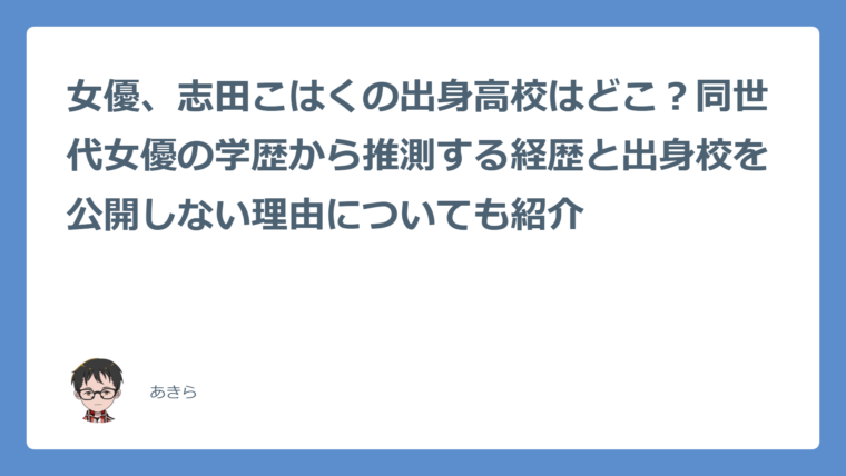 この記事では、志田こはくさんの出身高校と、同世代女優の経歴から推測した出身校を公開しない理由について解説します。