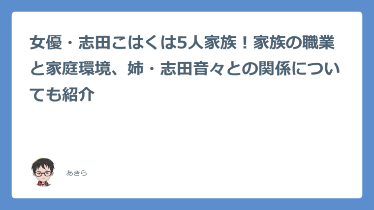 - 志田こはくの家族は父母姉弟の5人構成で、父母と弟の職業は公表されていない