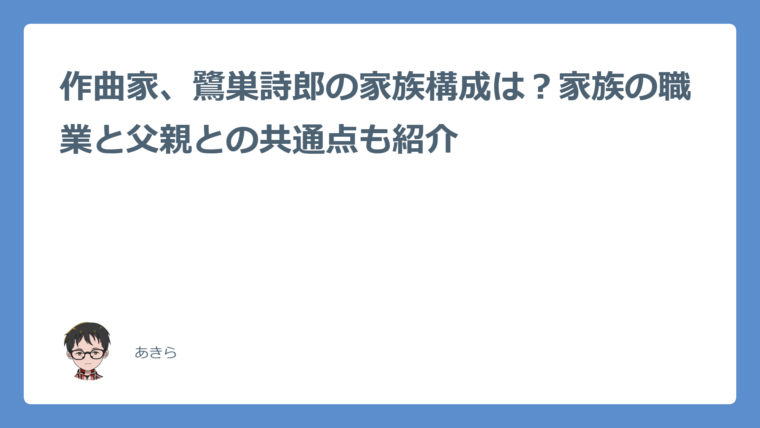 作曲家、鷺巣詩郎の家族構成は?家族の職業と父親との共通点も紹介