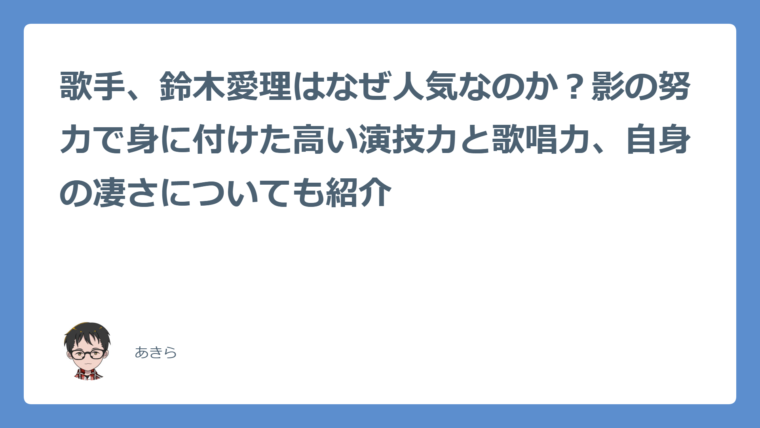 歌手、鈴木愛理はなぜ人気なのか?影の努力で身に付けた高い演技力と歌唱力、自身の凄さについても紹介