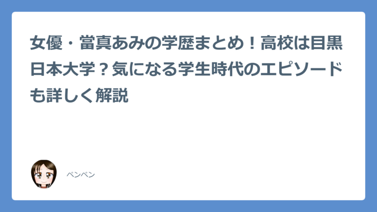 女優・當真あみの学歴まとめ!高校は目黒日本大学?気になる学生時代のエピソードも詳しく解説