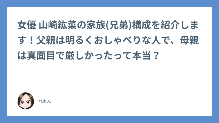 今回は山崎紘菜さんの家族構成や家族とのエピソードについて詳しく解説しました。具体的には、