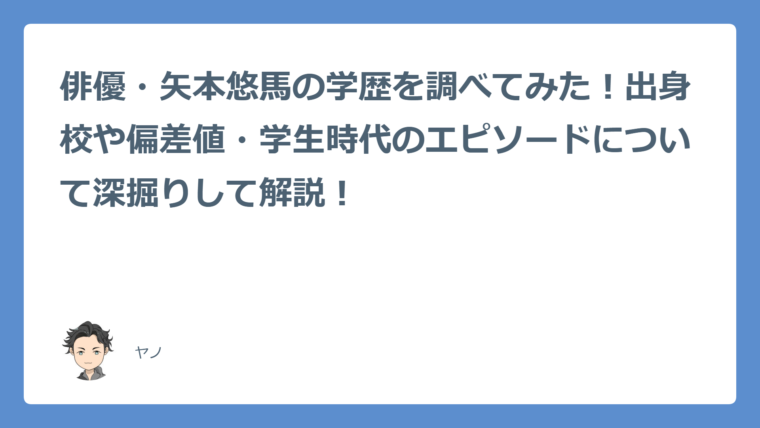 俳優・矢本悠馬の学歴を調べてみた!出身校や偏差値・学生時代のエピソードについて深掘りして解説!