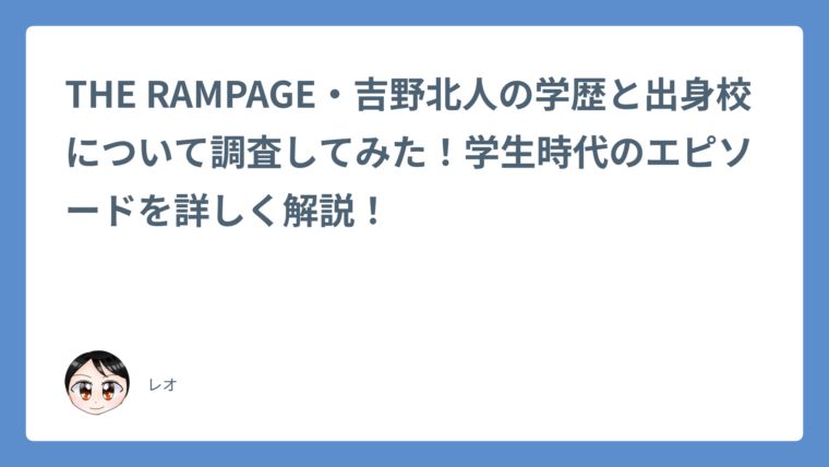 この記事では、吉野北人さんの学歴や学生時代のエピソードについて、深掘りしてご紹介します。その内容は以下の通りです。